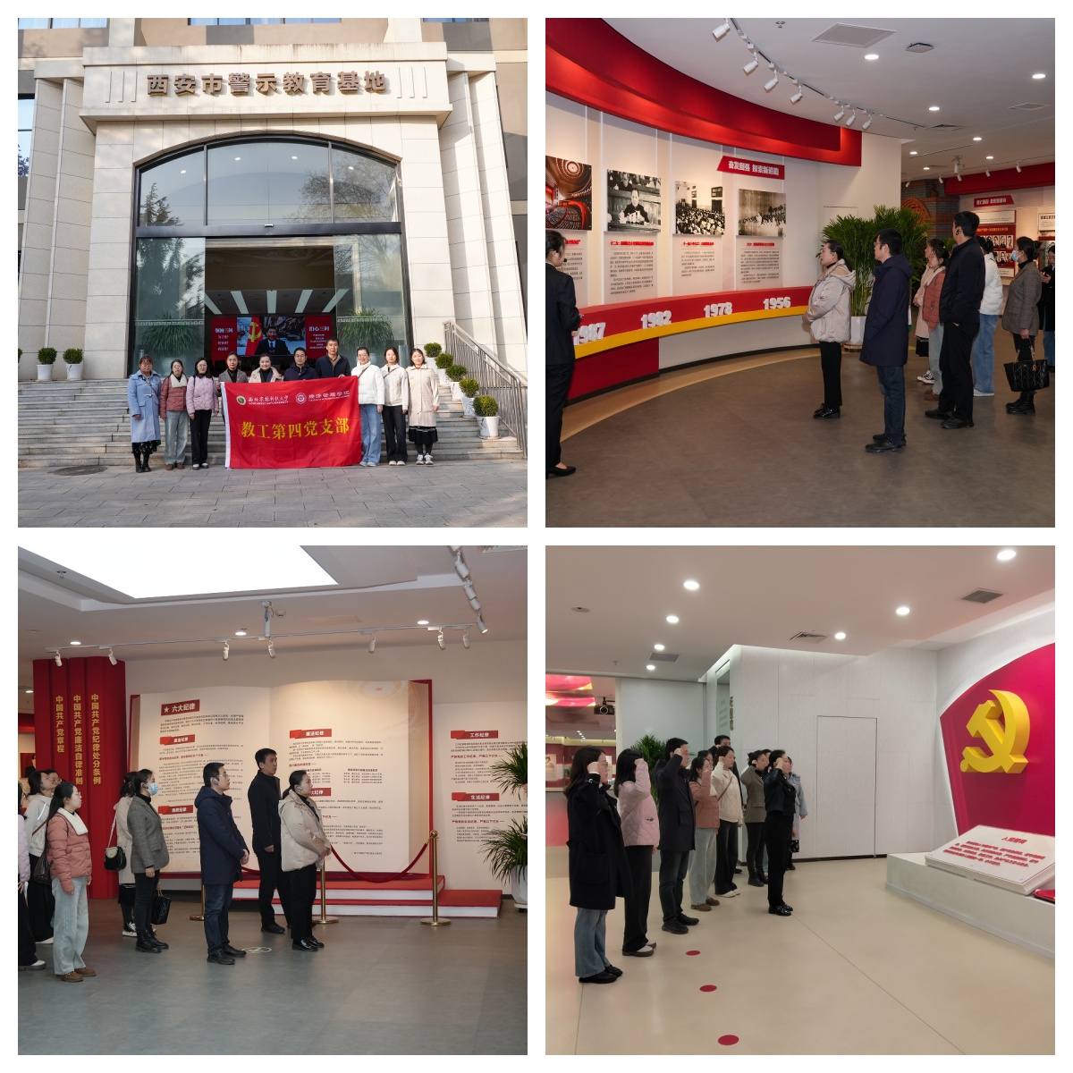 活動(dòng)首站走進(jìn)位于西安文理學(xué)院高新校區(qū)的西安市警示教育基地,“你是黨員嗎?你還記得自己的入黨誓詞嗎?你知道黨的紀(jì)律是鐵打的嗎?”三個(gè) "捫心自問"直擊人心,全體黨員帶著這些問題跟隨基地講解員的引導(dǎo),依次參觀了不忘初心、鐵打黨紀(jì)、警鐘長(zhǎng)鳴、榜樣力量等九大展區(qū),展區(qū)通過文字說明、圖片展示、案例剖析、情景模擬等多種形式,系統(tǒng)呈現(xiàn)了近年來查處的各類違紀(jì)違法典型案例。黨員同志們認(rèn)真聆聽講解,不時(shí)駐足沉思,深刻認(rèn)識(shí)到腐敗行為對(duì)黨的事業(yè)、人民利益和個(gè)人家庭的嚴(yán)重危害,進(jìn)一步增強(qiáng)了對(duì)“清廉是福、貪欲是禍”的理解。參觀最后環(huán)節(jié),黨員同志們面向黨旗,在黨委書記石穎賢同志領(lǐng)誓下,一起重溫入黨誓詞,警示全體黨員牢記初心使命,嚴(yán)守紀(jì)律底線,永葆共產(chǎn)黨員的政治本色。